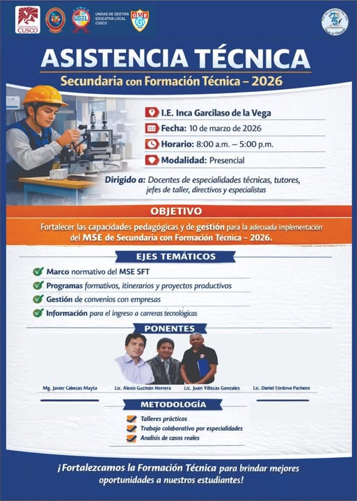 Asistencia Técnica Presencial sobre la implementación del Modelo de Servicio Educativo de Secundaria con Formación Técnica (MSE-SFT) 2026.